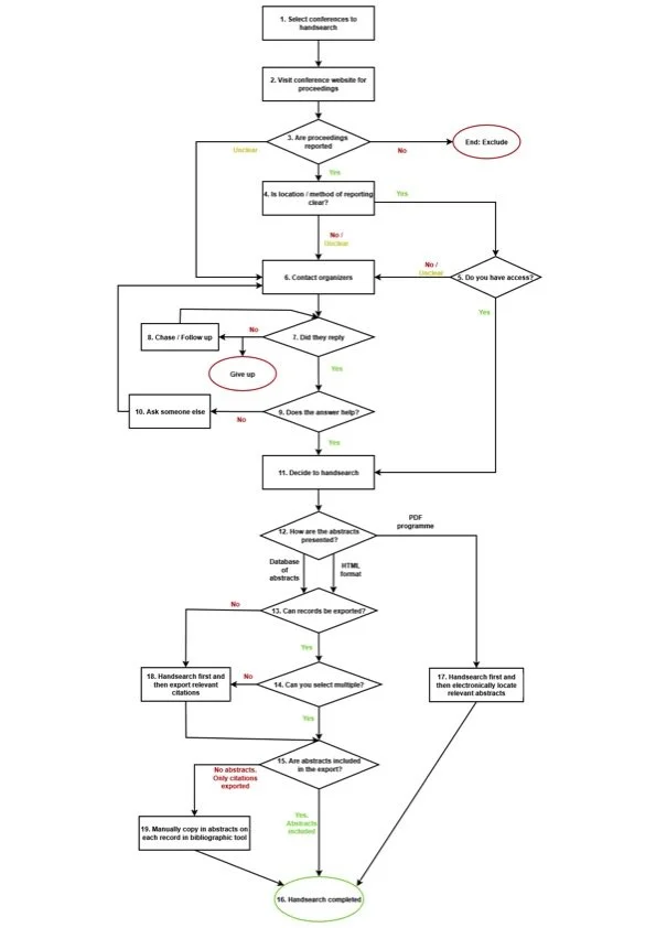 We know there are ‘other ways’ to identify conference proceedings and abstracts beyond handsearching, such as scraping the data from websites, but this is variously legal or illegal depending on the website in question. There are, we note informally (from trying the legal ways, you understand), various imperfections to engage with too. Also, conference abstracts can be identified by searching Embase or CPCI-S, but we know too that reporting is patchy and incomplete, so these searches are incomparable to a handsearch (2) (which focuses on the full report). So, now, on to the proposals.